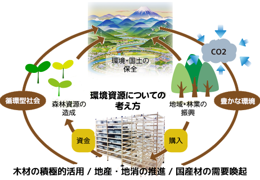 地域の木を使うことで、地域の森を守り、持続可能な環境循環・環境共生をもたらします。